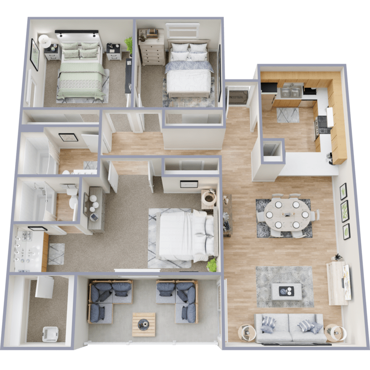 Plans, prices, and specifications subject to change without notice. Finishes may vary depending on the exact unit/floor plan. 3D floor plans are artistic representations. <br> The rental rates advertised represent base rent only. Additional monthly fees may apply and can include, but are not limited to, charges for utilities such as electricity, water, sewer, and trash collection, as well as pest control, pet rent, parking, and other applicable service fees. Prospective residents are encouraged to inquire about all potential charges that may be assessed in addition to the base rent.