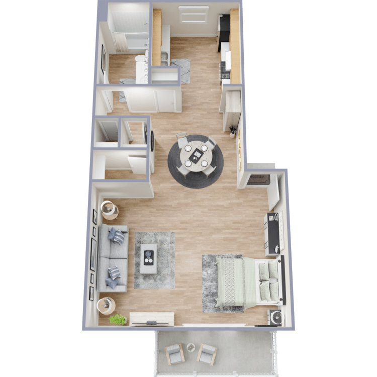 With nine thoughtfully designed floor plans, including studio, one, two, and three-bedroom layouts, you’ll find the perfect home to fit your lifestyle. Each apartment features wood-style plank flooring, oversized closets, central air and heating, and private patios or balconies. Select homes add an extra touch of charm with the premium upgraded kitchens and bathrooms.
